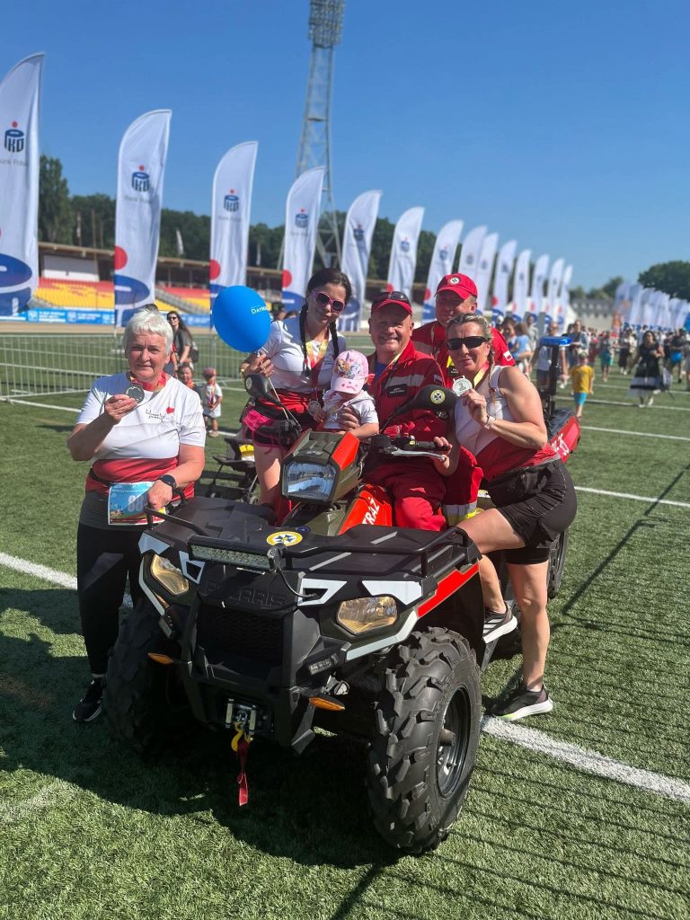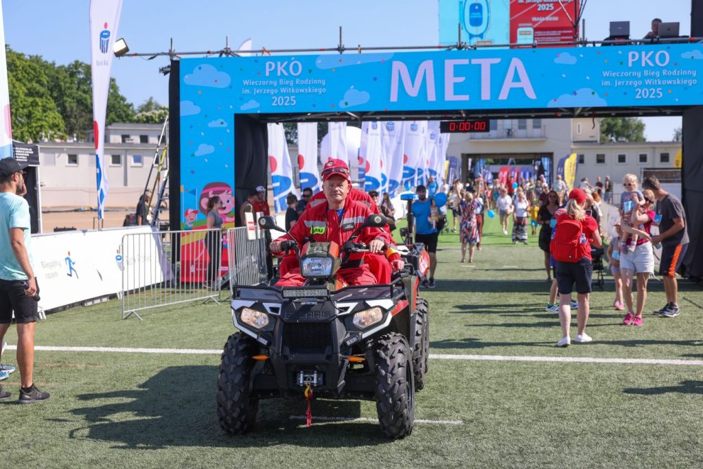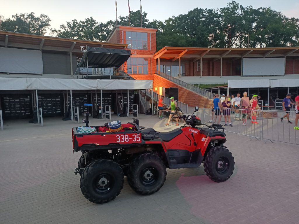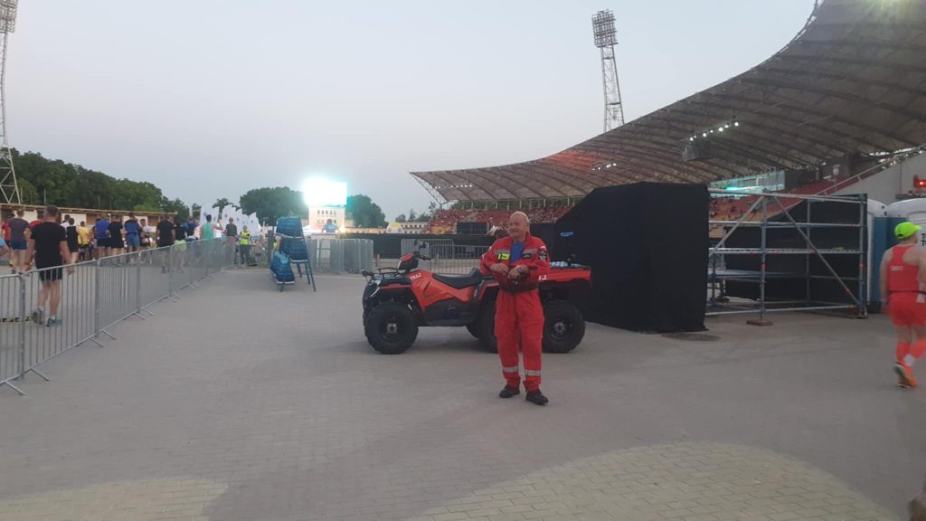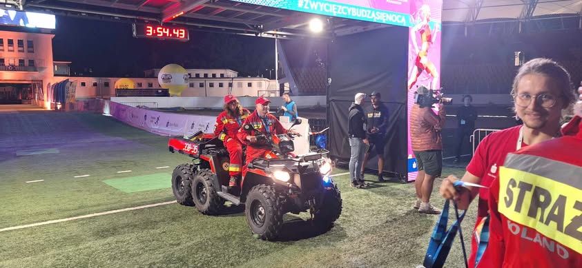 Ponownie para ratowników poruszała się quadem za ostatnimi biegaczami. Pozostali nasi ratownicy na mecie usytuowanej na płycie stadionu pomagali osłabionym zawodnikom w bezpiecznym dotarciu do punktu pomocy medycznej i punktu nawodnienia.