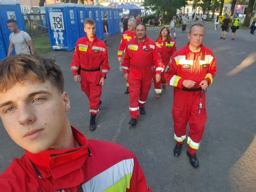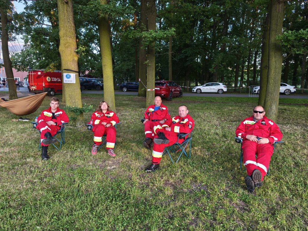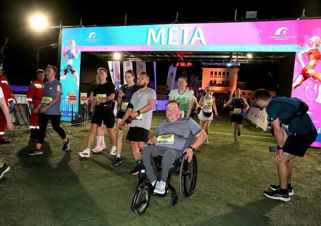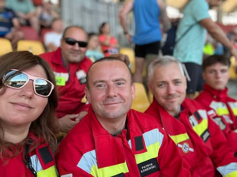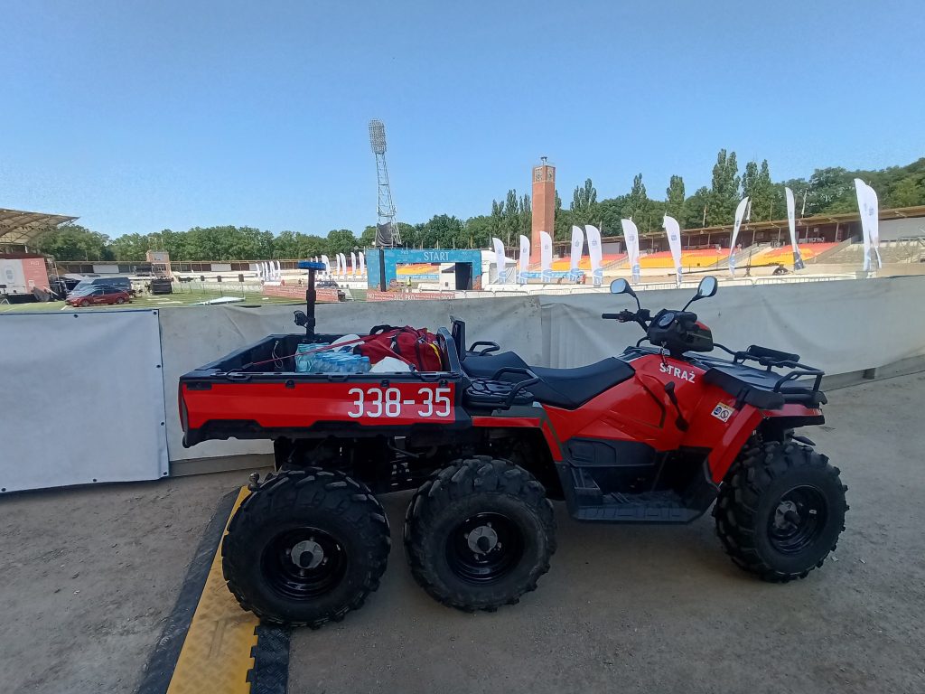Ponownie para ratowników poruszała się quadem za ostatnimi biegaczami. Pozostali nasi ratownicy na mecie usytuowanej na płycie stadionu pomagali osłabionym zawodnikom w bezpiecznym dotarciu do punktu pomocy medycznej i punktu nawodnienia.