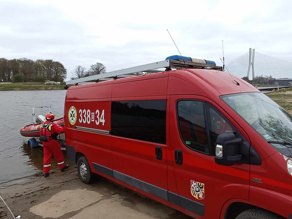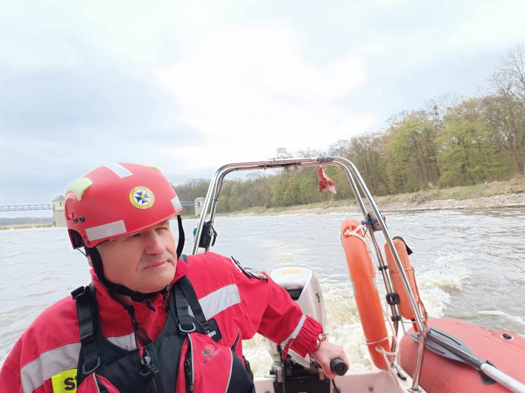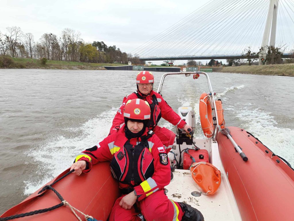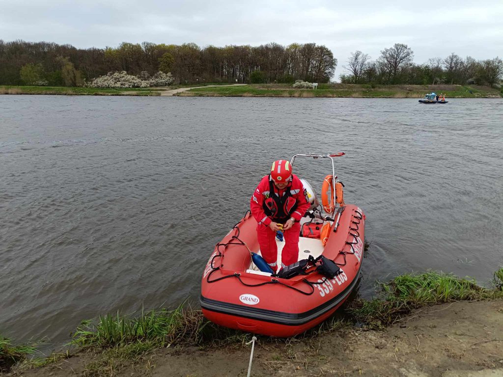 Po przybyciu na miejsce otrzymaliśmy zadanie sprawienia na wodę naszego RIB-a i z powierzchni wody sprawdzenie brzegu rzeki czy tam nie przebywa poszukiwana osoba.