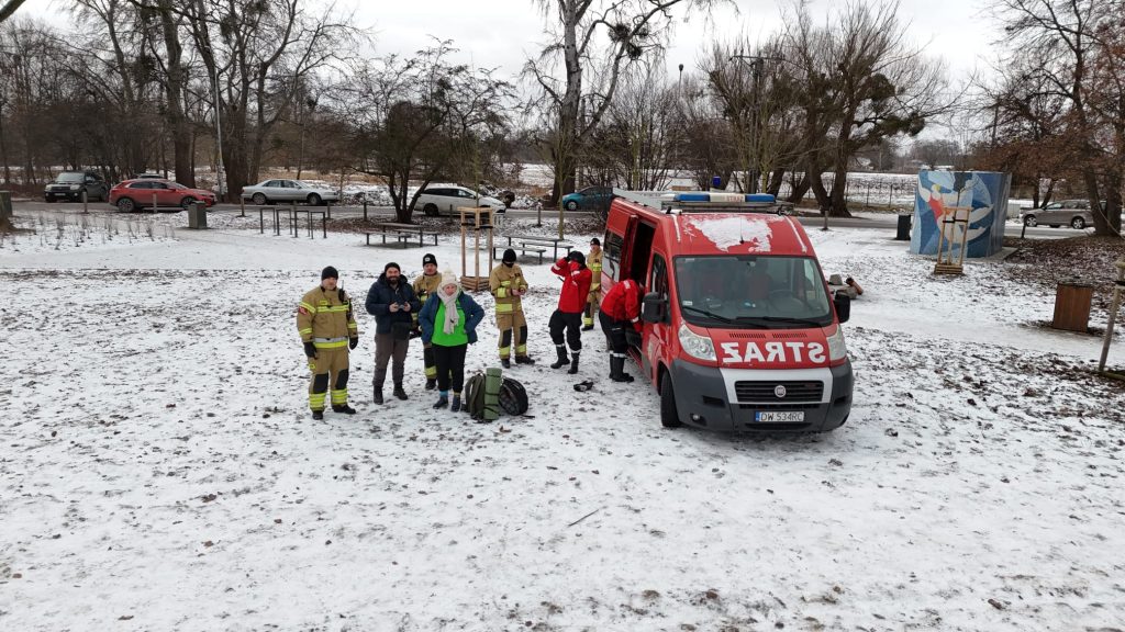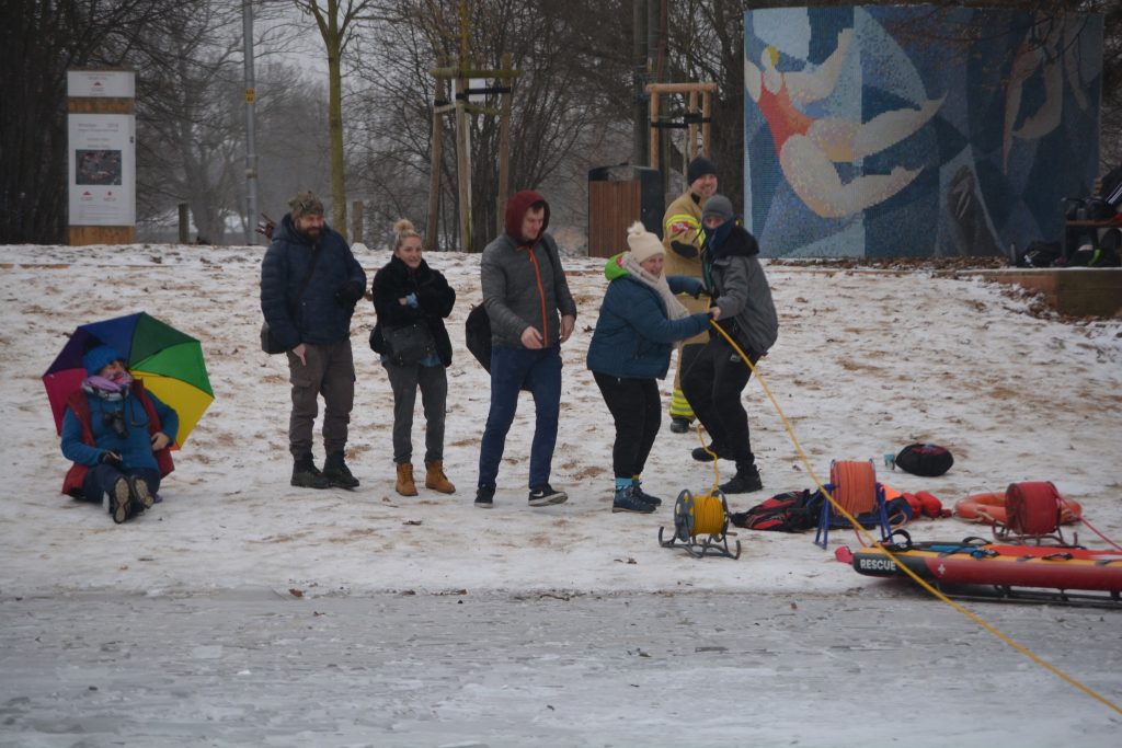 W trakcie działań do współpracy zachęciliśmy spacerowiczów i morsów, którzy pomagali nam w ciągnięciu liny asekuracyjnej. Była to bardzo owocna współpraca.